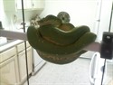 Mikey, Mikey, Mikey!! Did you not get my last message? I told you about removing the perch 1st. One of the drawbacks to the suction cups is they don't come off easily. I still think he needs a bigger cage. And yes, move him to an area where he won't see so much traffic! He doesn't seem nippy to me. You saw how calm he was when I held him. Aaron's right, you gotta learn to read them. Just be patient! You just brought him home!! I'll help you get him set up in a bigger cage and we'll add more greenery, put him in a quiet spot, feed him, and see what happens! I think you got a sweet beauty on your hands. Most of them are better out of their cages, like everyone said. Adolescence also seems to be the worst stage of a Chondro, in my meager experience that is. All of mine can be handled once they are out of their cage, even my wicked Medusa! Only exception...Blaze the Biting Bas@#*&! He's about a year and a half! You can't manuever the perch enough! Take your time and go hold that Redtail instead!!!