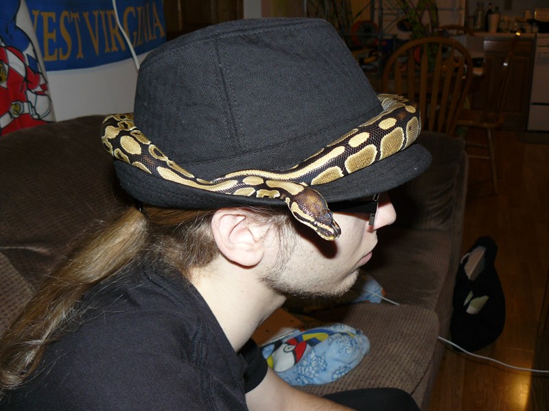 Unfortunately she is now over 2,000 grams and the brim of the hat will not hold her anymore. She keeps trying to stay up there every time we handle her though.