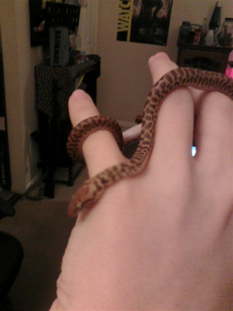 Puku, my Children's Python, day I got him. Breeder said he was about a month old, but I'm not sure, because the guy also said it was eating just fine. But it took the snake several, several months to eat unaided...