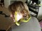 Biak GTP, Female, Blue tail tip, no blues have developed other than her tongue and tail. Still yellow patches on her. And she's used to people