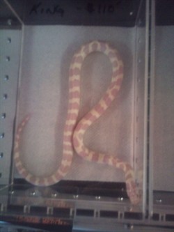 Comments: Male albino aberrant king snake. Purchased from Ectothermic Reptiles at the fall ERAS show 2012.
