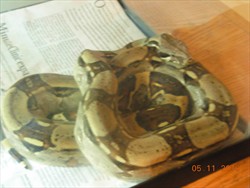 I have a red-tailed boa that is about 1 year old. I got him from my friends Randy and Danielle for some tattoo work. He's a v ery mellow snake and is used to being held. I spend as much time with him as I can.