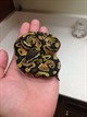 We received an adult female normal ball python through a friend who got her from a friend. This means we have no idea about her past or lineage other than the fact that she is nearly ten years old. She has a great temperament, although I believe Lucy is wild caught. Our love of her grew quickly and after having her for about 5 years, we decided to get another one. We purchased a hatchling male pastel het albino and are having a great time getting him acclimated. Future breeding is definitely in the works.